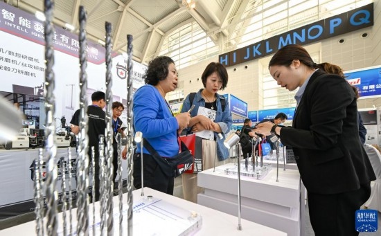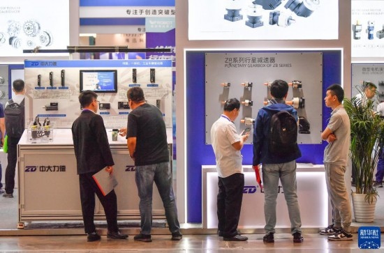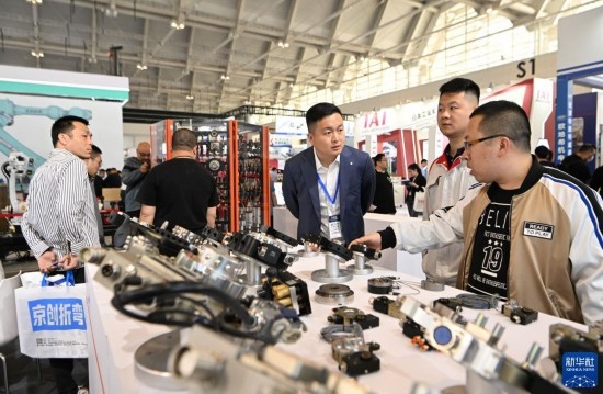 5月8日,在國家會展中心(天津),觀眾參觀展會上展出的工業(yè)設(shè)備。