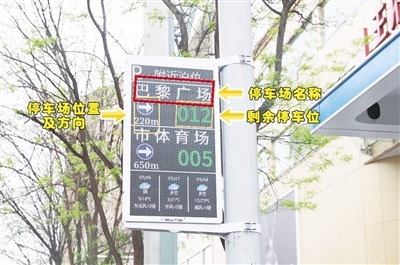 5月7日上午,在中山西路,記者看到懸掛的智能停車指引屏上顯示附近停車場(chǎng)的位置,以及停車場(chǎng)的停車位余量。維多利購物中心附近的一個(gè)智能停車指引屏上顯示民族大世界有7個(gè)空余停車位、民族商場(chǎng)有18個(gè)空余停車位,而這些數(shù)據(jù)也在實(shí)時(shí)更新,市民根據(jù)智能停車指引屏的信息便能輕松找到停車位,不用再為停車難而發(fā)愁。