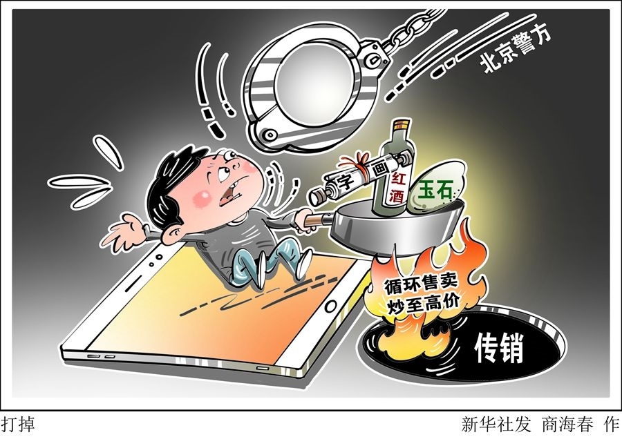 北京市公安局經偵總隊六支隊支隊長楊立華13日介紹,去年以來,北京市出現多起涉玉石、字畫、紅酒等收藏品搶購轉售類警情。警方偵查發(fā)現,犯罪團伙利用微信公眾號、App等搭建網絡交易平臺,以銷售玉石、字畫、紅酒等難以確定市場價格的藝術品、收藏品名義,通過掃碼等方式招募會員,并依據加入順序確定會員上下級關系。會員按照標價購買商品后,次日向平臺繳納一定費用,即可將所購商品在平臺繼續(xù)加價銷售給下級會員,以此循環(huán)、反復售賣。