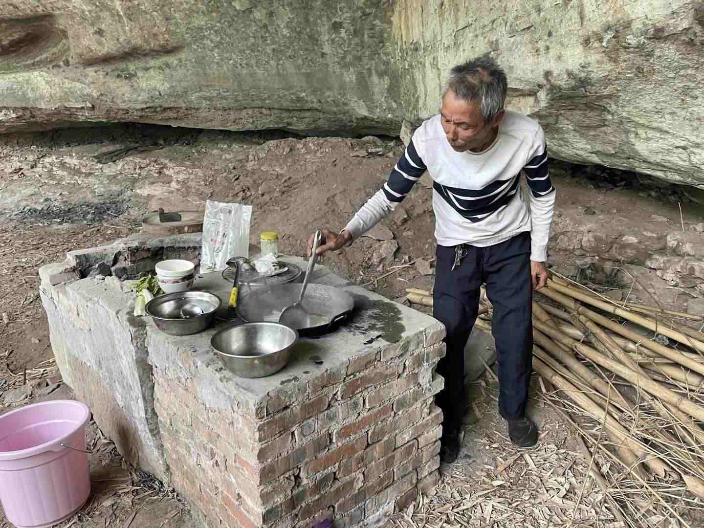 當地熱心網友拍攝的視頻顯示,安置馮必全的臨時房分為臥室和廚房兩個功能區(qū),但面積不大。由于臨時房沒有灶臺、沒有氣,馮必全說自己無奈之下去賒了一個電磁爐和一個電水壺?!按髱r洞里有灶臺,旁邊柴禾多得是,不用燒電煮飯炒菜,夏天涼快也不用空調電扇?!瘪T必全告訴紅星新聞記者。