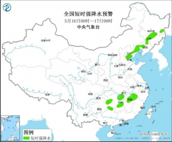 16日至17日,江漢南部、江南大部、華南北部等地有中到大雨,局地暴雨;東北地區(qū)、華北東部有小到中雨,部分地區(qū)大雨。預(yù)計(jì)5月16日08時(shí)至17日08時(shí),內(nèi)蒙古東南部、吉林中部、遼寧中西部、河北中北部、北京、天津、湖南北部等地的部分地區(qū)將有8-10級(jí)雷暴大風(fēng)或冰雹天氣,局地風(fēng)力可達(dá)11-12級(jí);黑龍江東南部、吉林中部、遼寧中西部、河北中北部、北京東部、天津、湖北東南部、湖南、江西中北部等地的部分地區(qū)將有短時(shí)強(qiáng)降水天氣,小時(shí)雨量20-40毫米,局地可達(dá)50毫米以上。預(yù)計(jì),強(qiáng)對流的主要影響時(shí)段為今天午后至前半夜。中央氣象臺(tái)5月16日06時(shí)發(fā)布強(qiáng)對流天氣藍(lán)色預(yù)警。