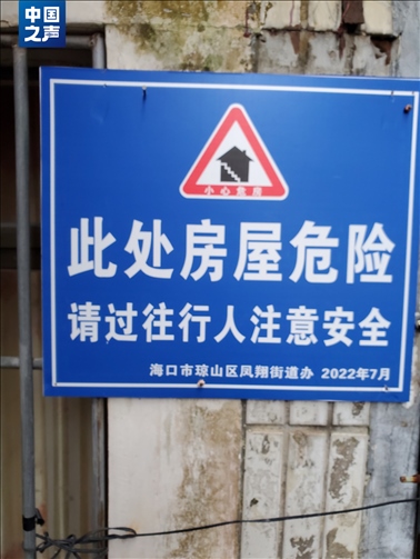中國之聲報(bào)道播出當(dāng)天上午,瓊山區(qū)多個(gè)職能部門來到這棟樓下,安置仍居住在內(nèi)的居民。