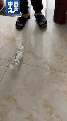 △危樓傾斜嚴(yán)重,放礦泉水會(huì)滾動(dòng)。