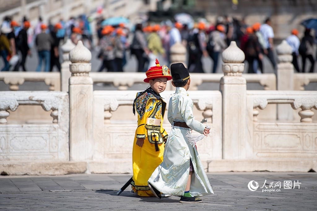 5月18日,兩位身著古裝的小孩正在故宮游覽。人民網記者 翁奇羽攝
