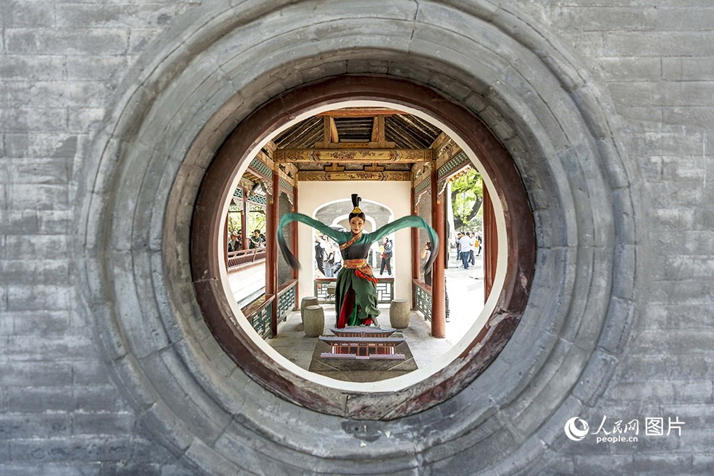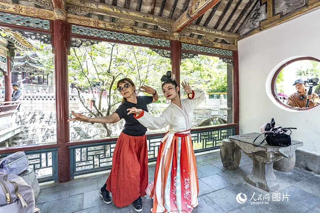 5月18日,在山西太原晉祠博物館內隨處可見的漢服游園表演。人民網 盧鵬宇攝