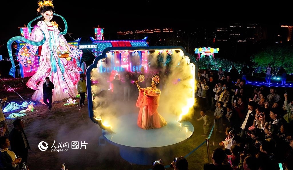 5月15日晚,山西太原晉陽湖桃花島,精彩的舞蹈演出和美輪美奐的燈組裝置吸引眾多游客觀賞。人民網記者 王帆攝