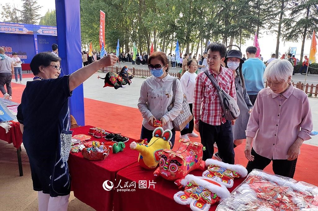 5月14日,“中國旅游日”主題周活動期間,河南省三門峽市陜州區(qū)在黃河岸邊舉辦“傳承多彩非遺”魅力陜州非物質文化遺產展演體驗活動,大展傳統(tǒng)藝術魅力,為群眾獻上了一場“非遺文化盛宴”。在活動現場,當地省級非遺傳承人向游客展示文創(chuàng)產品布老虎。人民網記者 王玉興攝