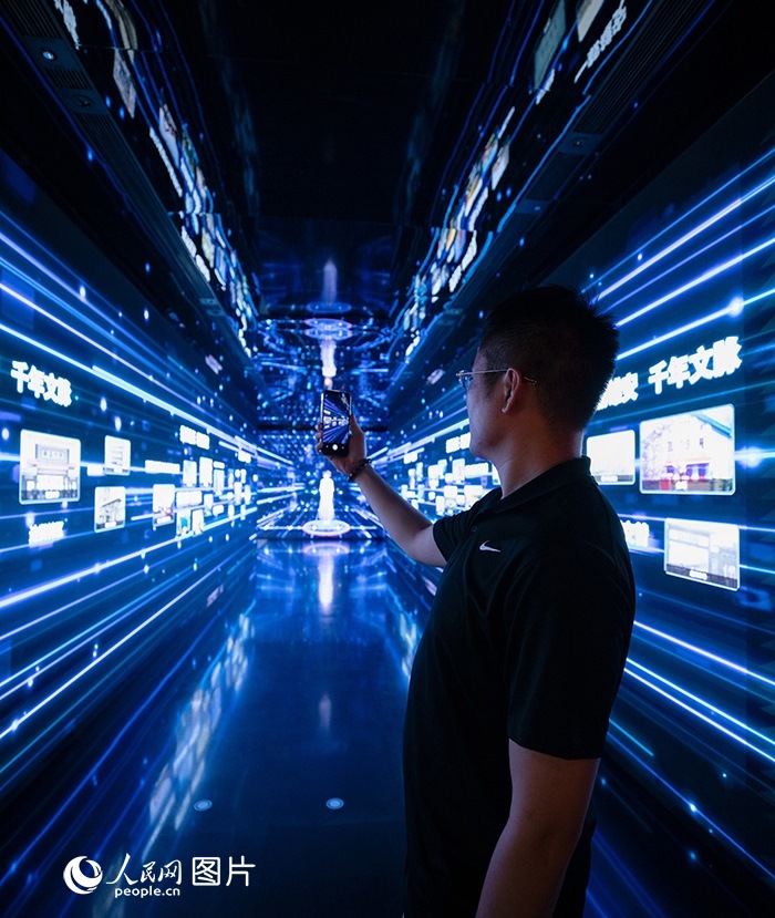 中國旅游日前夕,游客在雄安印象展館內參觀體驗。人民網 李兆民攝