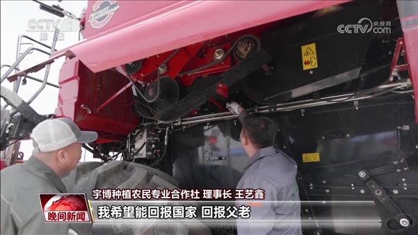 宇博種植農(nóng)民專業(yè)合作社 理事長(zhǎng) 王藝鑫:我就和父母說了我的想法,父母也非常了解當(dāng)時(shí)農(nóng)業(yè)的形勢(shì),也都挺同意我的想法的。因?yàn)楝F(xiàn)在有很多新型的種地方式和新型農(nóng)機(jī)具,年輕人可以研究研究這個(gè)新型種地方式,這樣也能使這個(gè)糧食產(chǎn)量得到提高,這不也屬于為家鄉(xiāng)作貢獻(xiàn)嘛。