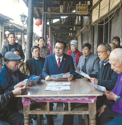 四川省廣安市廣安區(qū)人民檢察院干警向居民宣講法律知識(shí),引導(dǎo)居民積極主動(dòng)參與保護(hù)生態(tài)環(huán)境等,為檢察公益訴訟提供有效線索。張國(guó)盛攝(人民視覺(jué))