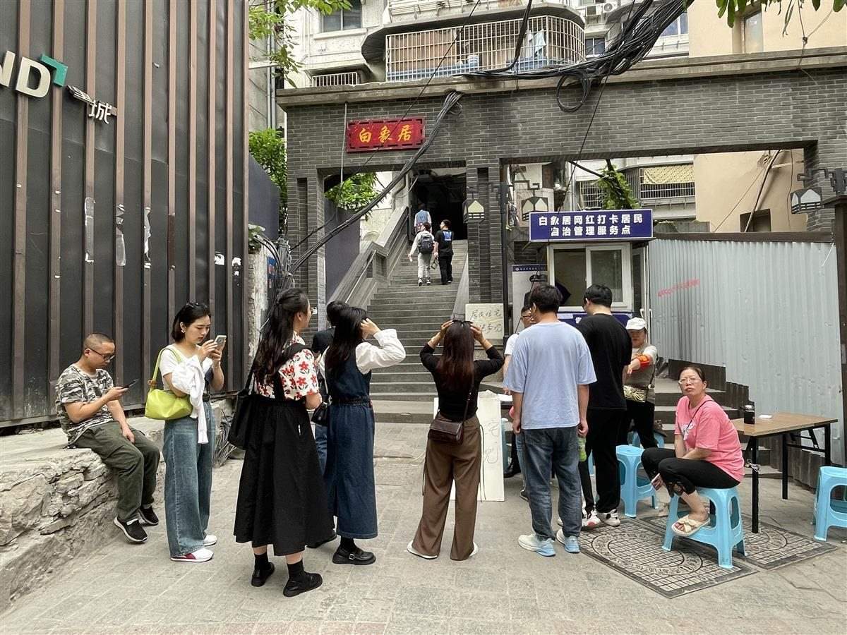 情況說明還顯示,因外來游客太多,居民不堪其擾,5月23日下午,小區(qū)居民自發(fā)組織“居民自治小組”在白象居大門設(shè)置“居民住宅,謝絕參觀”字牌進(jìn)行訪客準(zhǔn)入登記,自發(fā)維護(hù)白象居居民樓內(nèi)部秩序管理,維護(hù)小區(qū)安寧。目前,白象街社區(qū)居委會(huì)已介入居民自治小組的協(xié)調(diào)工作,力爭在游客參觀和居民訴求之間找到一個(gè)平衡點(diǎn)。