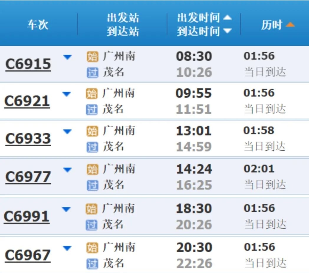 茂名站位于江湛鐵路上,是一個運(yùn)營城際列車和普速鐵路的混合車站。廣州南至茂名的城際列車日常開行45對,周末增加至52對,將茂名到廣州的旅行時間縮短至2小時左右,十分方便。