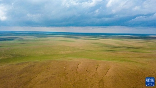 這是5月30日拍攝的內(nèi)蒙古錫林郭勒盟蘇尼特右旗境內(nèi)的草原風(fēng)光(無人機(jī)照片)。