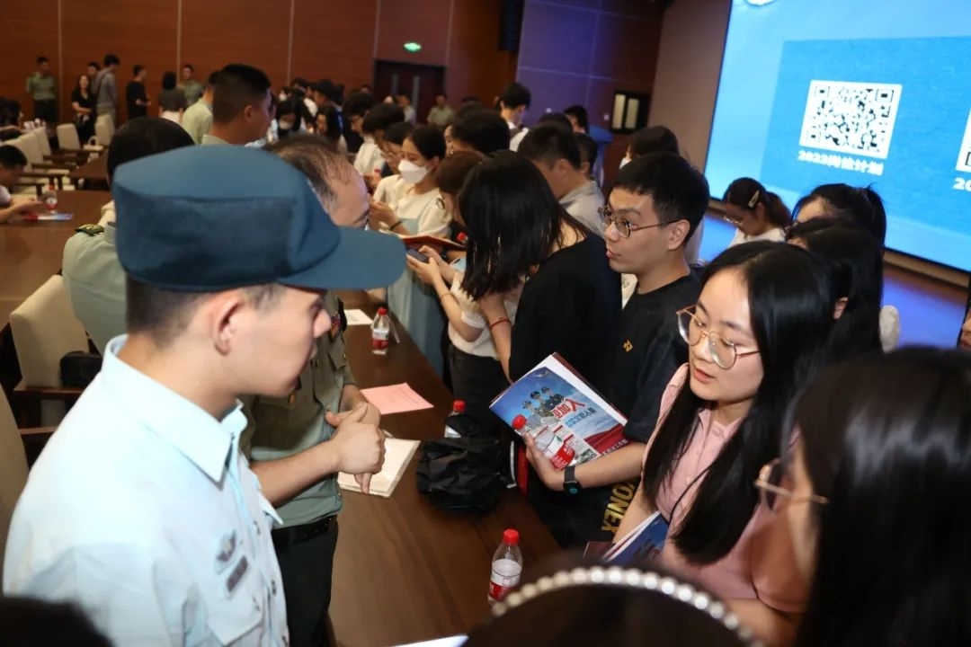 從“政治榮譽(yù)高、與國(guó)家命運(yùn)聯(lián)系緊”,到“福利待遇優(yōu)、地域環(huán)境好”,各院校人力資源干事坦率真誠(chéng)的介紹得到了現(xiàn)場(chǎng)學(xué)生們的肯定?!斑@次來到學(xué)校,就是想告訴大家,當(dāng)前文職人員隊(duì)伍還有部分缺額,是青年學(xué)子干事創(chuàng)業(yè)的好機(jī)遇,發(fā)展前景十分廣闊……”陸軍政治工作部文職人員局領(lǐng)導(dǎo)的一番話,點(diǎn)燃了高校學(xué)子投身國(guó)防的熱情。