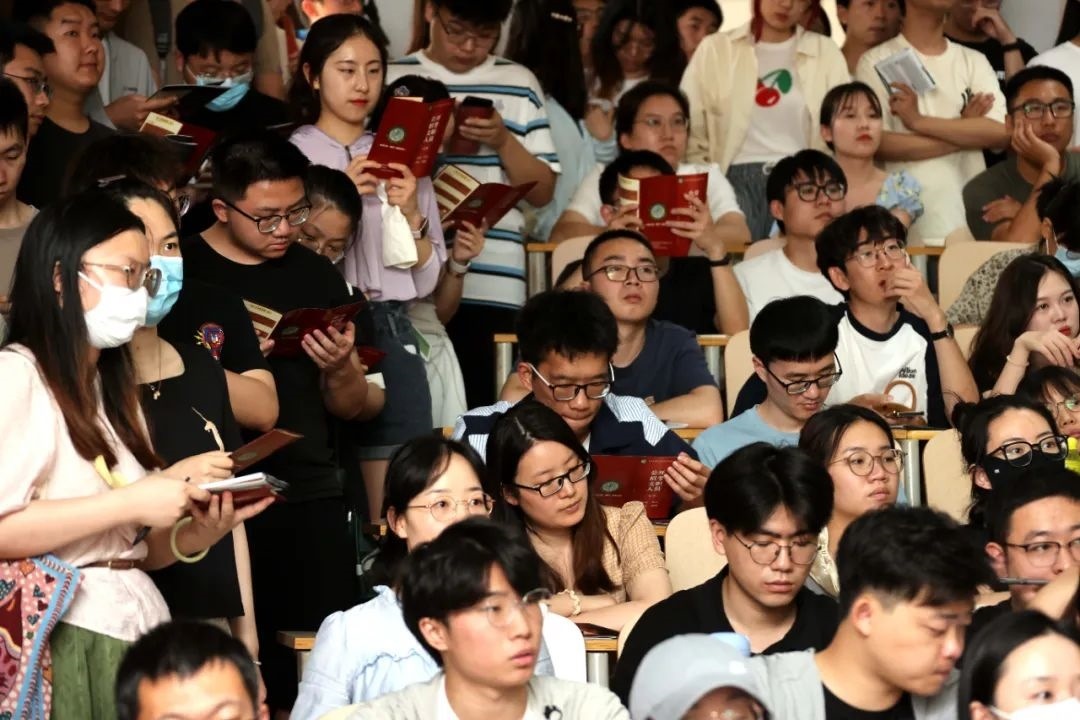 活動(dòng)中,盡管教室內(nèi)溫度很高,可沒有一名學(xué)生中途離開。一名站在過道處聽講的學(xué)生差點(diǎn)暈倒,工作人員把他扶到空調(diào)處休息了一會(huì),感覺好點(diǎn)后,他又繼續(xù)站在人群中聽講。