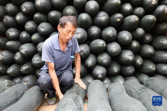 9月13日,村民在貴州省黔東南苗族侗族自治州施秉縣城關鎮(zhèn)白塘村將收獲的冬瓜裝車,準備供應市場。