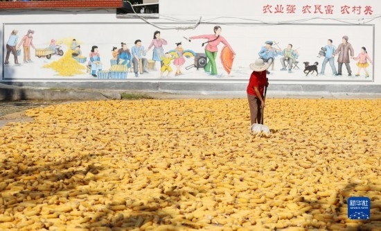 金秋時節(jié),各地農(nóng)民搶抓晴好天氣忙收獲,田間地頭一派繁忙景象。新華社發(fā)(肖偉 攝)