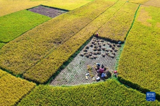 金秋時節(jié),各地農(nóng)民搶抓晴好天氣忙收獲,田間地頭一派繁忙景象。新華社發(fā)(何五昌 攝)