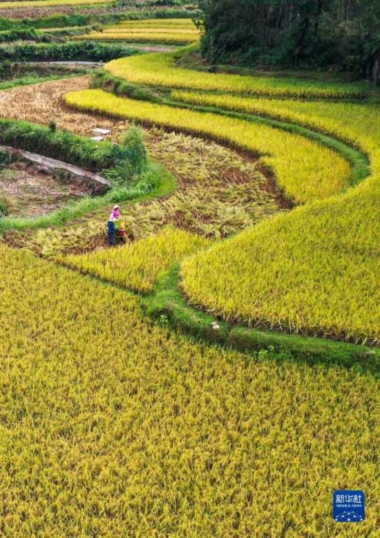 金秋時節(jié),各地農(nóng)民搶抓晴好天氣忙收獲,田間地頭一派繁忙景象。新華社發(fā)(磨桂賓 攝)