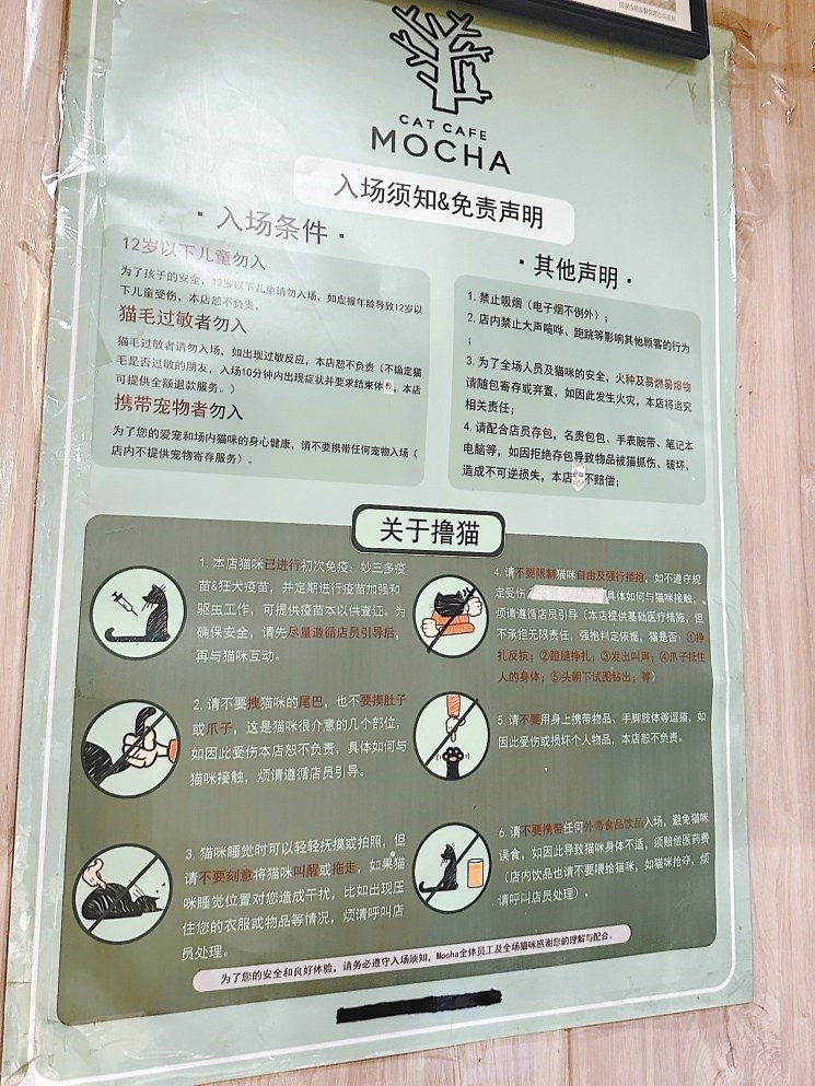 貓咖店內(nèi)的“入場須知”。