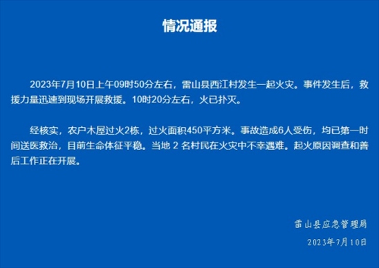 ·貴州西江千戶苗寨景區(qū)發(fā)生火災(zāi),官方通報(bào):兩人不幸遇難。
