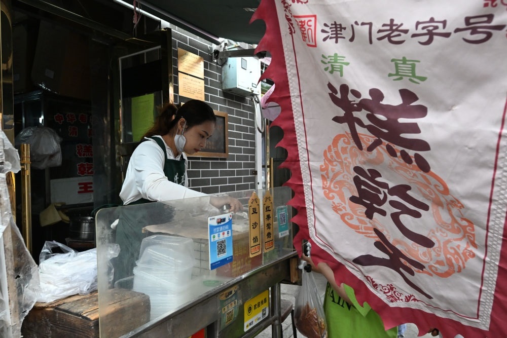 市民、游客正在天津吃早點。新華社記者 孫凡越 攝