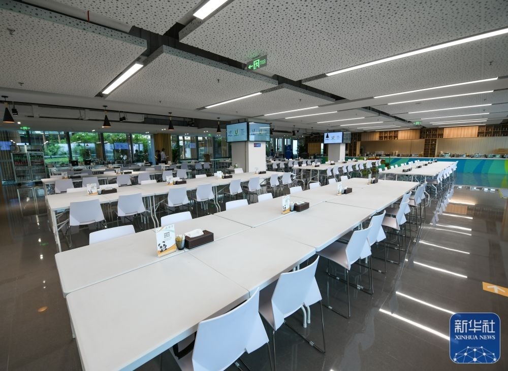 ↑這是7月13日拍攝的成都大運(yùn)會(huì)主媒體中心的媒體餐廳。新華社記者 王曦 攝