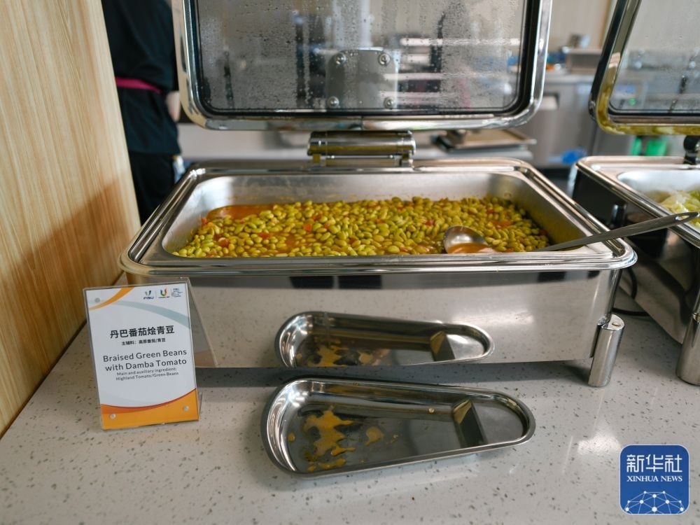 ↑這是7月14日拍攝的成都大運(yùn)會(huì)主媒體中心媒體餐廳內(nèi)菜品。新華社記者 胥冰潔 攝