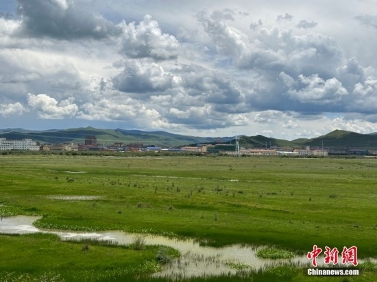 紅原也是全國三大濕地之一——若爾蓋濕地的重要組成部分。 圖為紅原牦?,F(xiàn)代農(nóng)業(yè)園區(qū)前的濕地。