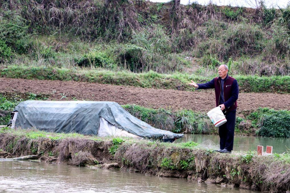 2023年3月,貴州思南的退捕漁民王朝生在給魚投食。新華社記者鄭明鴻 攝