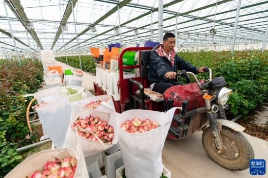 一名花農(nóng)在云天化晉寧花卉產(chǎn)業(yè)現(xiàn)代化示范園內(nèi)搬運(yùn)鮮花(7月12日攝)。新華社記者 崔文 攝
