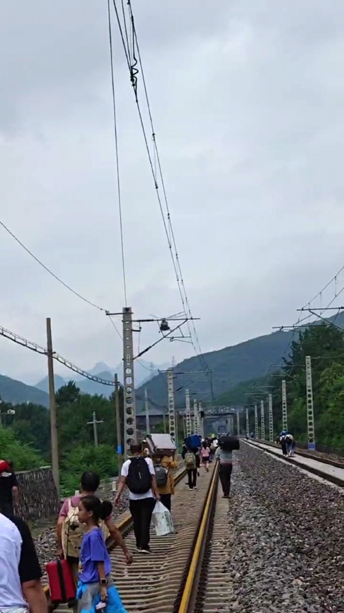 聽探過路的乘客說,目前有公路、鐵軌、山路這3個方向,軌道上的淤泥已經(jīng)能沒到膝蓋,山上破碎的石頭很鋒利、容易劃傷。他們決定沿著109國道走。