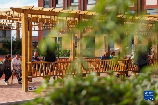 8月11日,居民在吉林省舒蘭市舒蘭三中居民安置點(diǎn)院內(nèi)的長(zhǎng)廊里休憩。