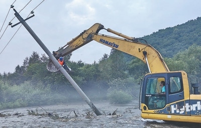 8月9日,在吉林省汪清縣八人溝農場,國網吉林電力公司共產黨員服務隊在搶修停電線路。卜 育 石 健攝影報道