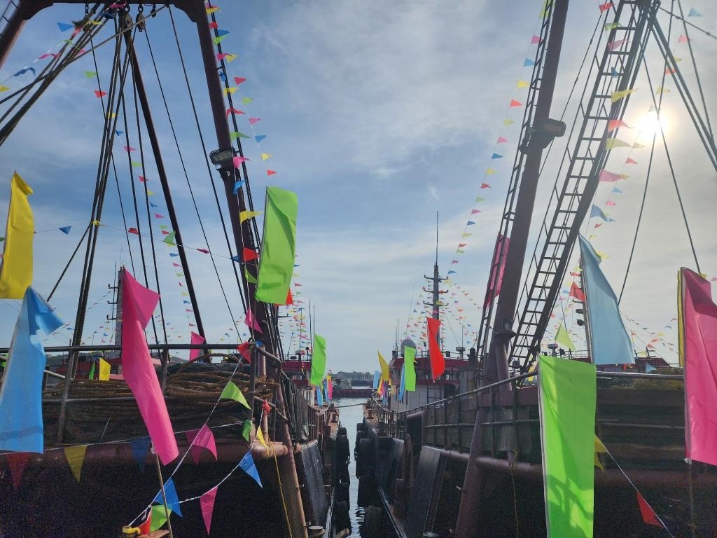 8月15日,開漁前夕,等待出海的漁船。新華社記者 歐陽建嘉 攝