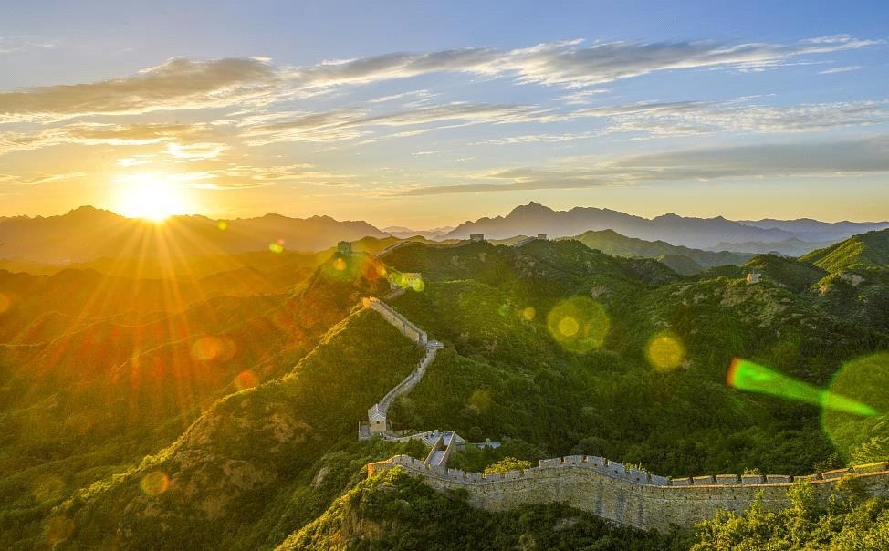8月18日,河北承德,傍晚時(shí)分,灤平縣金山嶺長(zhǎng)城景區(qū),夕陽晚霞,景美如畫。