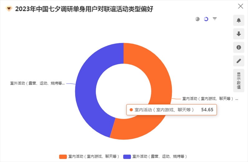 “單身經濟與浪漫經濟并不沖突?!睆堃愀嬖V記者,今年單身人士參加七夕節(jié)交友聯(lián)誼活動意愿強烈,“有53.77%的表示會參加。在聯(lián)誼活動的選擇上,54.65%的人會選擇劇本殺、密室逃脫、桌游等室內活動?!?/p>