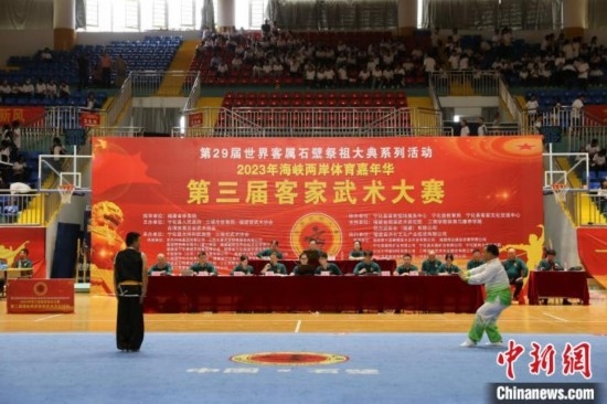 此次客家武術(shù)大賽由福建省體育局指導(dǎo),寧化縣人民政府、三明市體育局、福建省武術(shù)協(xié)會(huì)、臺(tái)灣體育總會(huì)武術(shù)協(xié)會(huì)聯(lián)合主辦。(張煌鵬 張煒婷)