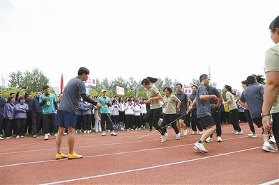 田徑比賽與呼啦圈傳遞比賽之后,便是速度與協(xié)調(diào)并重的集體跳繩比賽。大家的注意力集中在場上,為選手們鼓勁加油,選手們則全神貫注,誓要拿出最好成績。