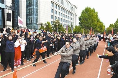 拔河是最后一個項(xiàng)目。賽場兩側(cè)人頭攢動、摩肩接踵,大家無不關(guān)注著這場團(tuán)結(jié)與力量的比試。掌聲、加油聲、歡呼聲響徹云霄,在一場場激烈對抗中,全場氣氛一次次達(dá)到高潮。
