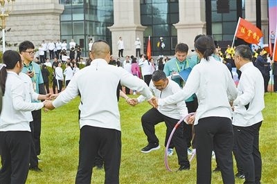 一邊是如火如荼的競速賽事,一邊是輕松愉快的友誼賽與趣味賽。小游戲有大學(xué)問,乒乓球托球跑接力賽講究的是穩(wěn)中求進(jìn),呼啦圈傳遞賽則考驗(yàn)著合作無間的智慧。