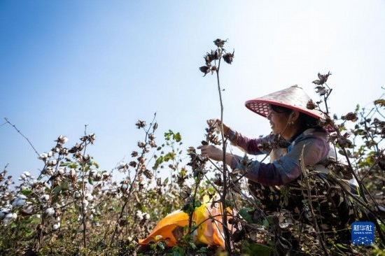 金秋十月,湖南省益陽市南縣種植的4萬余畝棉花相繼進(jìn)入采收季,當(dāng)?shù)孛揶r(nóng)趁著晴好天氣采摘棉花,田間地頭一片忙碌的景象。