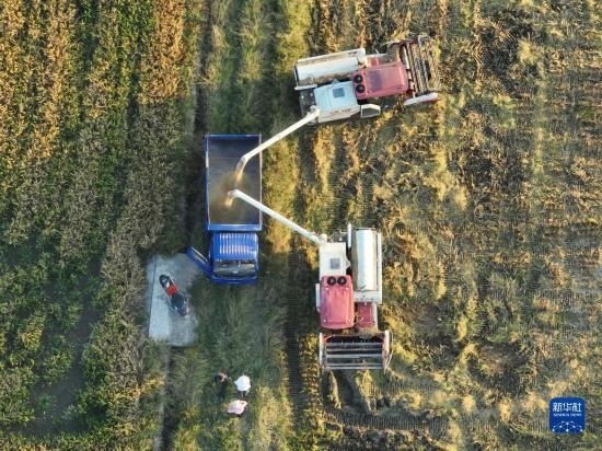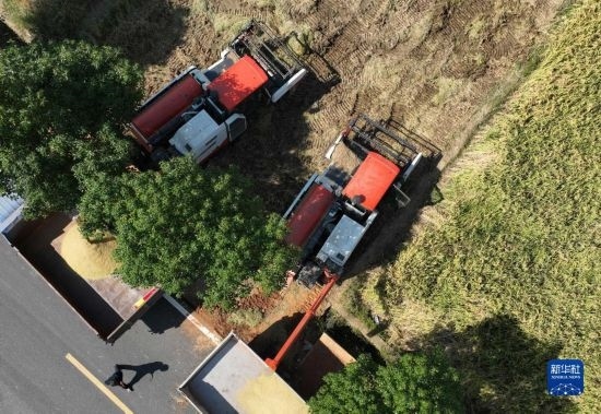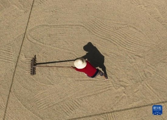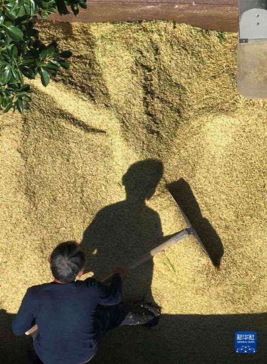 入秋以來,湖南各地晚稻陸續(xù)成熟,農民抓住好天氣搶收晾曬。