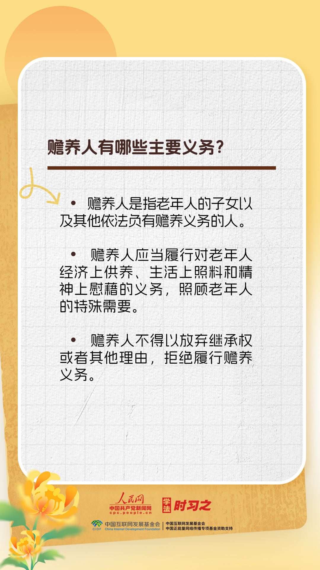 《中華人民共和國(guó)老年人權(quán)益保障法》的出臺(tái)進(jìn)一步保障了老年人的合法權(quán)益,弘揚(yáng)了中華民族敬老、養(yǎng)老、助老的美德。重陽(yáng)節(jié),一起來(lái)了解老年人權(quán)益保障法的相關(guān)規(guī)定。