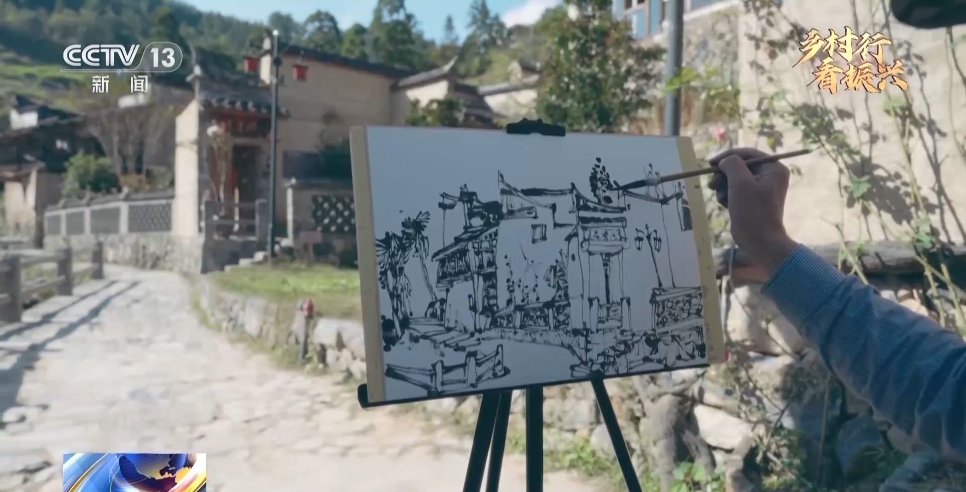 總臺記者 林姍蓉:這里就是龍?zhí)洞濉Q刂宦吠?,你可以看到兩岸都是這種高低錯(cuò)落的土夯的民居。這個(gè)季節(jié)柿子都熟了,到處都可以看到村民曬柿餅、曬稻谷,黃綠交錯(cuò)的,非常好看。來到龍?zhí)?,還有一點(diǎn)非常讓我印象深刻,就是在這里每走幾步,我都可以看到一個(gè)正在寫生創(chuàng)作的藝術(shù)家。
