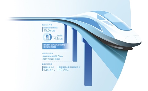 鐵路密布,高鐵飛馳,天塹變通途;以軌為尺,乘風(fēng)而行,天涯若比鄰。據(jù)統(tǒng)計,2022年,全國新增高鐵里程2082公里,年末里程達到4.2萬公里,均穩(wěn)居世界首位。