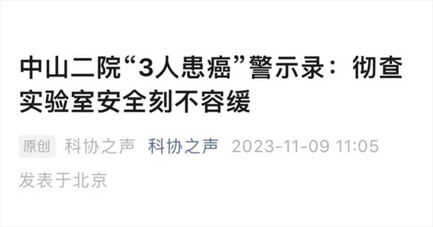 ·中科協(xié)就中山二院事件發(fā)聲:徹查實(shí)驗(yàn)室安全刻不容緩。實(shí)地探訪:網(wǎng)傳拆除中山二院爭(zhēng)議實(shí)驗(yàn)室純屬誤會(huì),其實(shí)是因消防隱患拆除了實(shí)驗(yàn)室過道的柜子,里面的設(shè)備、儀器等一切正常。