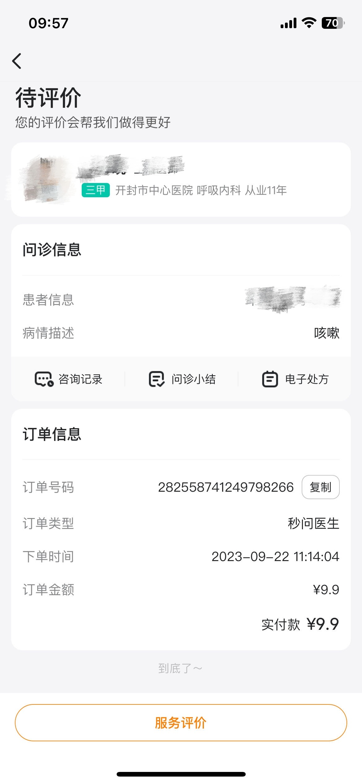 開封中心醫(yī)院:你要跟美團(tuán)溝通,這個不是我們醫(yī)院的平臺。?