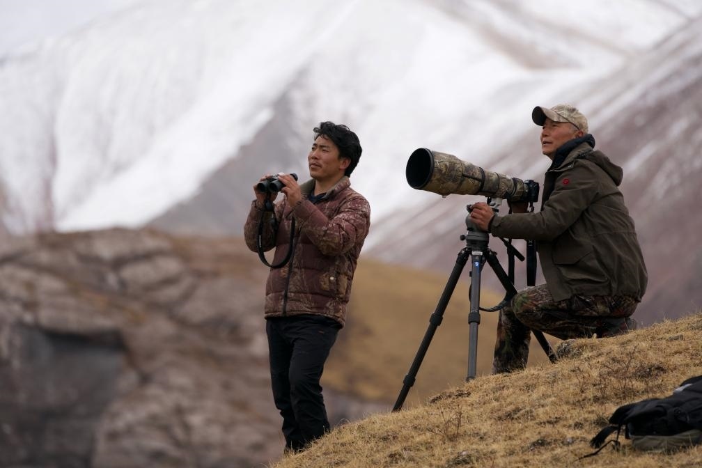 沒(méi)人知道影片背后有著怎樣的辛苦付出。雪豹就像一位“隱士”,對(duì)周邊環(huán)境的感知非常敏銳,攝影師尋找雪豹的蹤跡頗為不易。風(fēng)霜雨雪、高寒缺氧,三位牧民攝影師常常一連外出十幾天都無(wú)法發(fā)現(xiàn)雪豹?!皼](méi)有人退縮,我們的目標(biāo)就一個(gè),要讓全世界都能看到雪豹的電影。”更求曲朋說(shuō)。