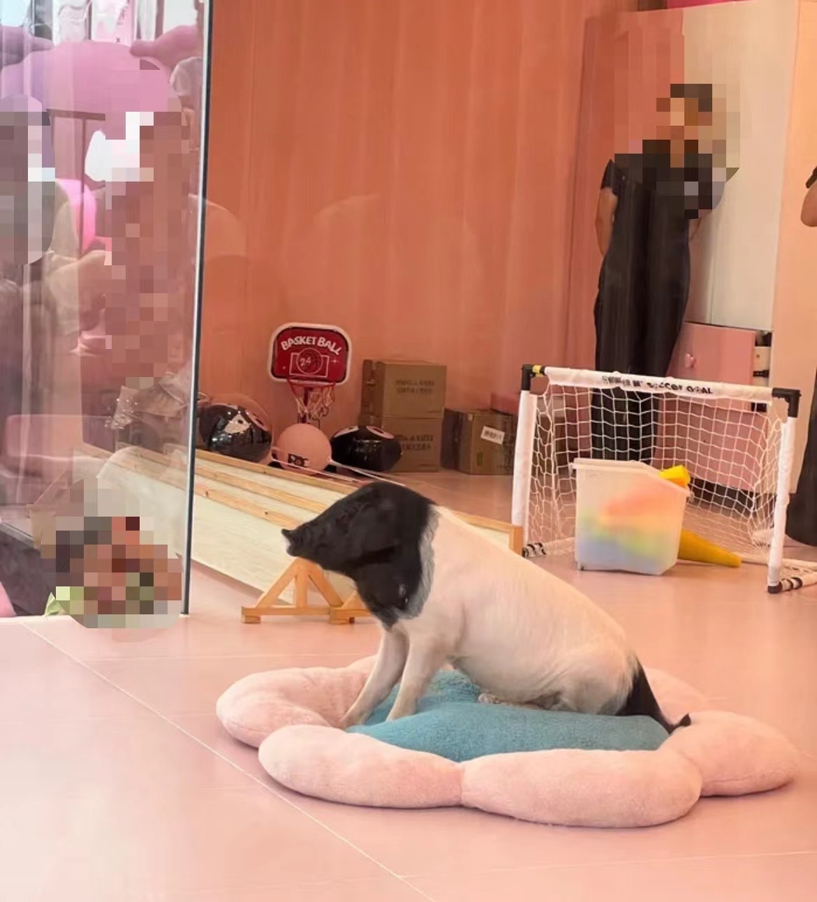 ▲“金華兩頭烏豬”在房間內(nèi)展示 圖據(jù)公司官網(wǎng)